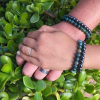 Man wearing Acceptance - Botswana Agate crystal Mala Bead Bracelet
